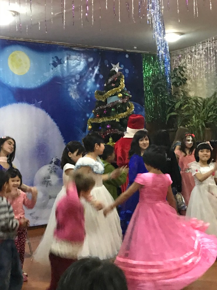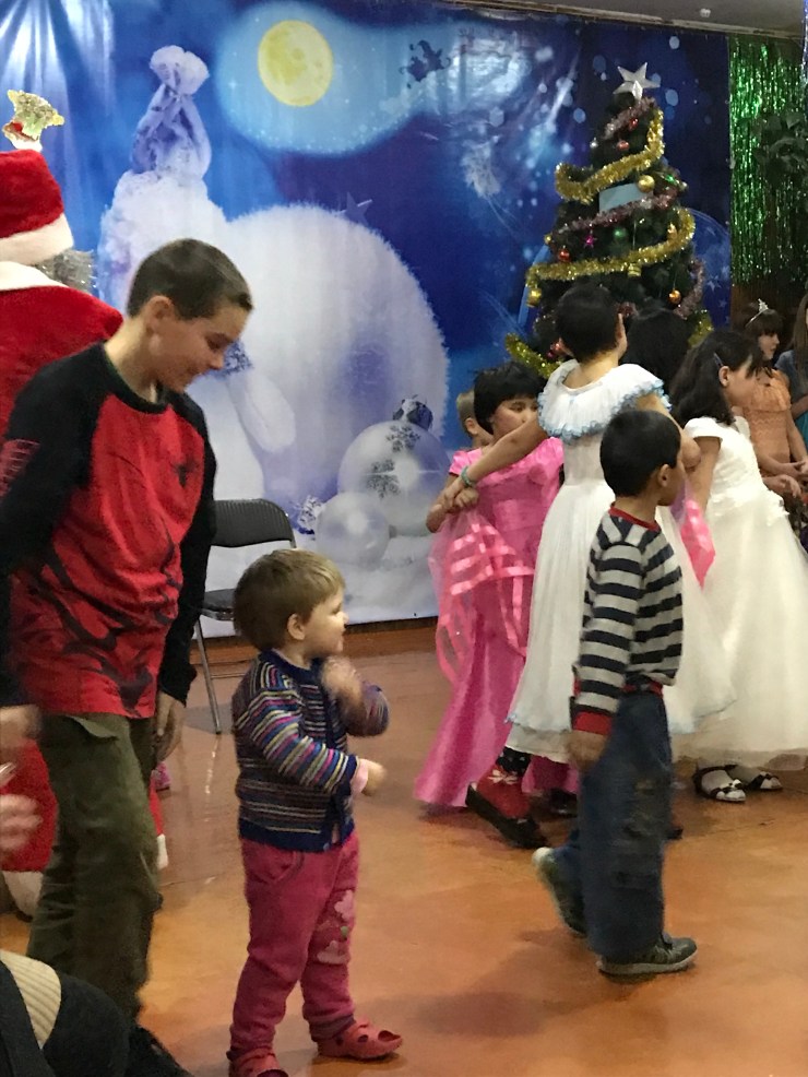 Der Tanz- und Veranstaltungsraum wurde erst für Spiele und später dann als Disko genutzt. Gemeinsam mit Kleinsten und den Ältesten wurden „Reise nach Jerusalem“ und andere Gruppenspiele gespielt. Zwei ehemalige Heimjungen, die inzwischen als junge Erwachsene immer noch aushelfen, waren Weihnachtsmann und DJ. Die Mädchen hatten die Chance ihre schönsten Ballkleider zu tragen. Ein Betreuer, der eigentlich frei hatte, verbrachte sein Neujahr trotz dessen, wie auch die zehn Jahre zuvor, mit „seinen“ Kids. Die Betreuer, die arbeiten mussten, bekamen ein kleines Weihnachtsgeschenk von den Kindern.