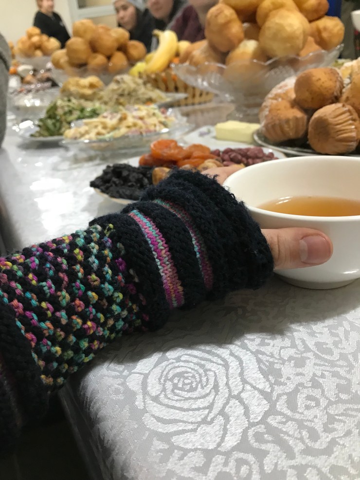 Typisch kirgisisch bedeutet das, was man auch als Gast in kirgisischen Familien angeboten bekommt. Dort gilt vor allem eines: Hauptsache jeder wird satt. Kirgisische Freunde haben uns erzählt, dass im Kirgisischen gesagt wird, jeder habe zwei Mägen und wichtig sei, beide zu füllen. In der Regel füllen einen „typisch“ kirgisischen Tisch verschiedene Salate, die manchmal auch Fleisch enthalten, Borsok, d.h. luftige frittierte Teigstückchen, Obst und Süßes. Oft bekommt man Suppe angeboten und häufige Hauptgerichte sind Plow (Reis mit Fleisch und Gemüse), Besch Barmak (lange Nudeln, Fleischstücke und Zwiebeln) und das dunganische und uigurische Lagman (Nudeln und Gemüse mit Fleisch). Beliebt sind auch russische Gerichte wie Hering im Pelzmantel oder Borscht. In jedem kirgisischen Restaurant und den meisten kirgisischen Familien bekommt man auch vergorene Stutenmilch angeboten.