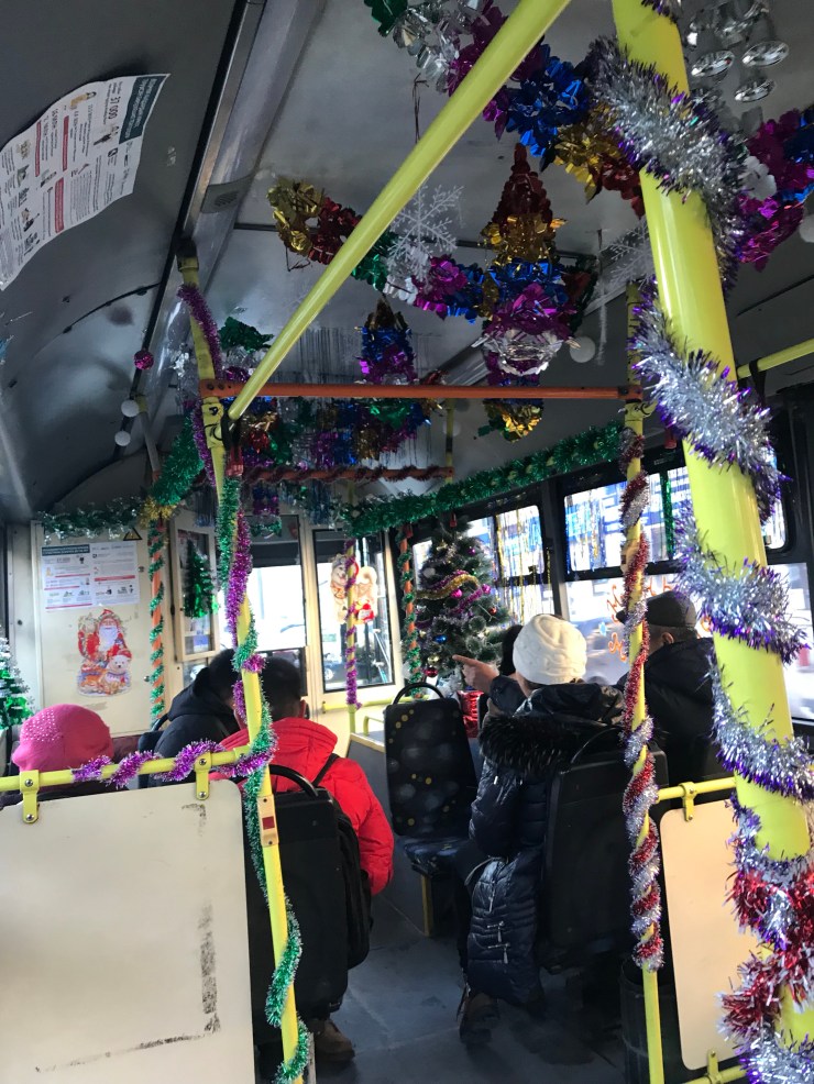 Bischkek ist eine wunderbare Stadt und inzwischen ein zweites Zuhause für mich. Das festliche Bischkek macht mich nur noch glücklicher und verliebter als ich sowieso schon bin. Vor allem die kreativ geschmückten Busse und Maschrutkas haben mir den Dezember versüßt und mich immer wieder zum schmunzeln gebracht.