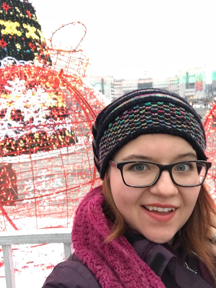 Und das bin ich, wie ich absolut glücklich über die Lichter und den Schmuck und die festliche Stimmung und natürlich meine absolut geniale Mütze bin.